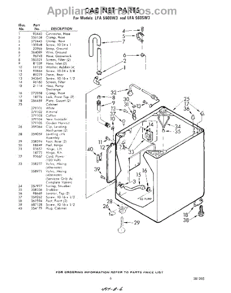 Parts for Whirlpool LFA5600W3: 06 - Cabinet Parts
