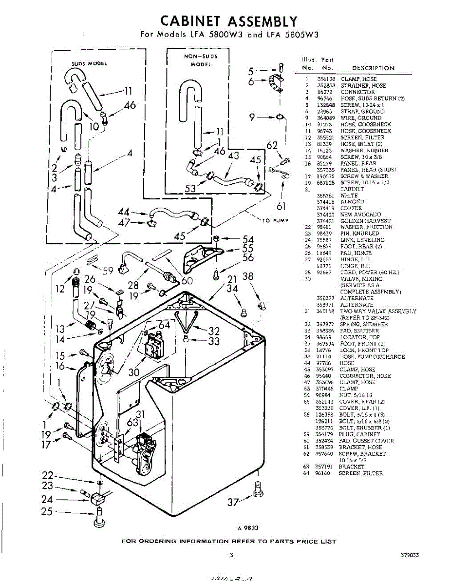 Parts for Whirlpool LFA5805W3: 03 - Cabinet Parts