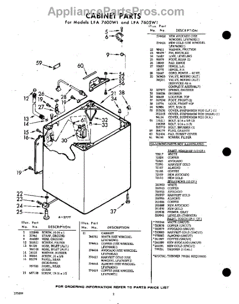 Parts for Whirlpool LFA7605W1: 02 - Cabinet Parts