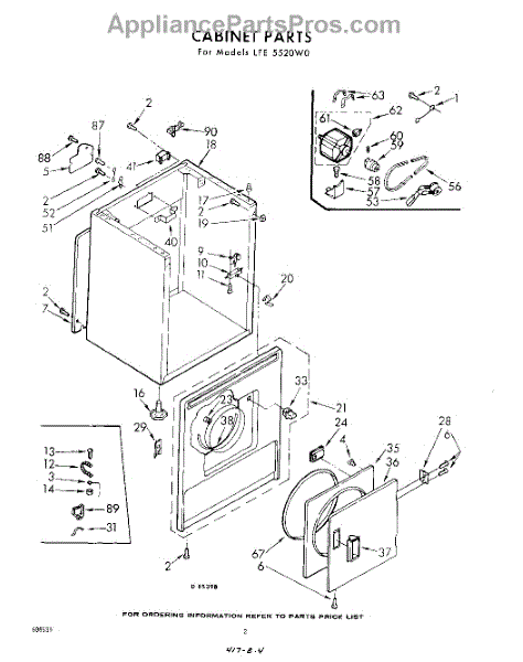 Parts for Whirlpool LFE5520W0: 02 - Cabinet Parts
