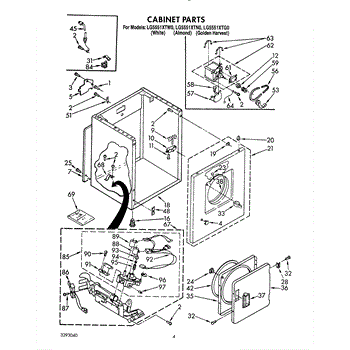 Fits all Whirlpool-made dryers (Whirlpool, Kenmore with prefix 110, Roper, KitchenAid, and Estate). Matching belt 341241 and rear support rollers 349241T. Whirlpool dryer repair manual 677818L.