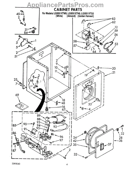 Parts for Whirlpool LG5551XTN0: 03 - Cabinet Parts