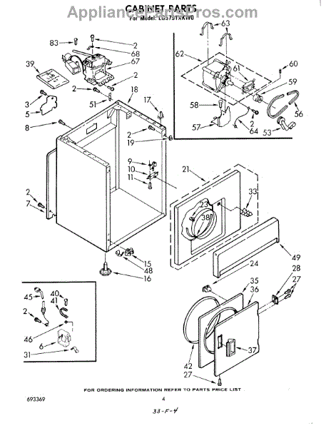 Fits all Whirlpool-made dryers (Whirlpool, Kenmore with prefix 110, Roper, KitchenAid, and Estate). Matching belt 341241 and rear support rollers 349241T. Whirlpool dryer repair manual 677818L.