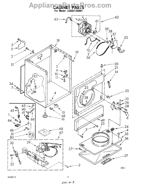 Fits all Whirlpool-made dryers (Whirlpool, Kenmore with prefix 110, Roper, KitchenAid, and Estate). Matching belt 341241 and rear support rollers 349241T. Whirlpool dryer repair manual 677818L.