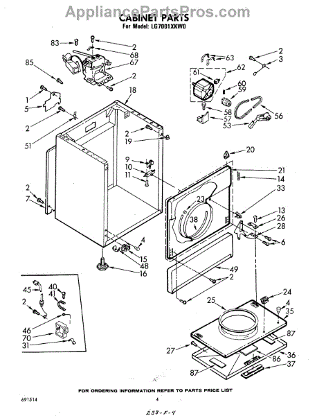 Parts for Whirlpool LG7001XKW0: 04 - Cabinet Parts