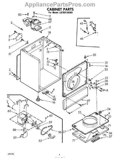 Parts for Whirlpool LG7801XKW0: 04 - Cabinet Parts