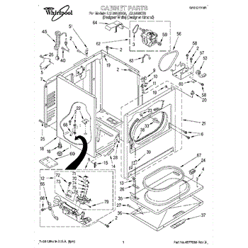 Fits all Whirlpool-made dryers (Whirlpool, Kenmore with prefix 110, Roper, KitchenAid, and Estate). Matching belt 341241 and rear support rollers 349241T. Whirlpool dryer repair manual 677818L.
