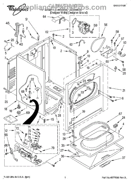 The Natural Gas Limiter is an OEM replacement part for Whirlpool dryers. Located where the gas supply connects, it regulates safe flow levels to fuel burners during heating cycles. Precise control prevents over-firing issues. Symptoms of a faulty limiter include: