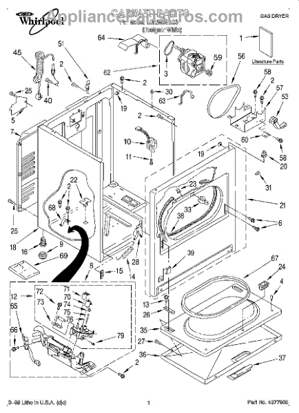 Fits all Whirlpool-made dryers (Whirlpool, Kenmore with prefix 110, Roper, KitchenAid, and Estate). Matching belt 341241 and rear support rollers 349241T. Whirlpool dryer repair manual 677818L.