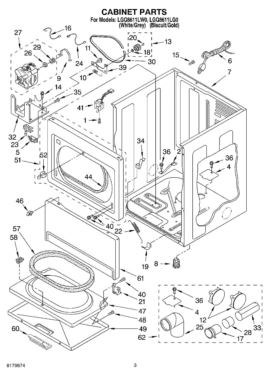 This power cord connects your appliance to household electricity, supplying safe, reliable power to its controls and components. Replace a damaged or overheated cord to restore dependable operation and reduce the risk of shorts.