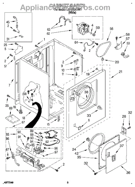 Fits all Whirlpool-made dryers (Whirlpool, Kenmore with prefix 110, Roper, KitchenAid, and Estate). Matching belt 341241 and rear support rollers 349241T. Whirlpool dryer repair manual 677818L.