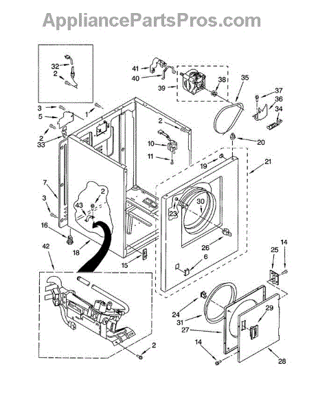 Fits all Whirlpool-made dryers (Whirlpool, Kenmore with prefix 110, Roper, KitchenAid, and Estate). Matching belt 341241 and rear support rollers 349241T. Whirlpool dryer repair manual 677818L.