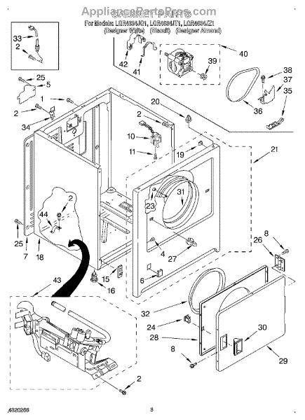 Parts for Whirlpool LGR4634JT1: 02 - Cabinet Parts