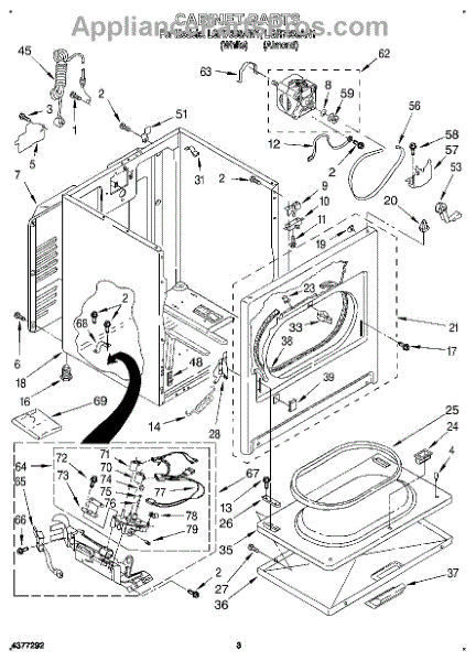 Fits all Whirlpool-made dryers (Whirlpool, Kenmore with prefix 110, Roper, KitchenAid, and Estate). Matching belt 341241 and rear support rollers 349241T. Whirlpool dryer repair manual 677818L.