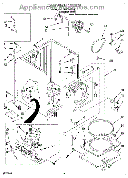 Fits all Whirlpool-made dryers (Whirlpool, Kenmore with prefix 110, Roper, KitchenAid, and Estate). Matching belt 341241 and rear support rollers 349241T. Whirlpool dryer repair manual 677818L.