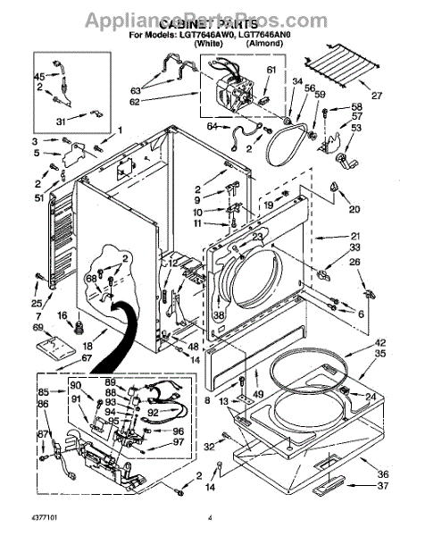 Parts for Whirlpool LGT7646AN0: 02 - Cabinet Parts
