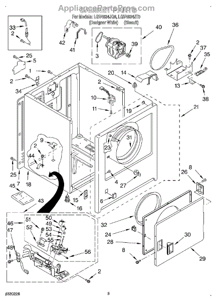 This belt shield assembly is a molded protective cover that helps guard the dryer's drive belt and pulley area from debris and accidental contact, keeping moving parts enclosed for safer, more reliable operation. What it does: