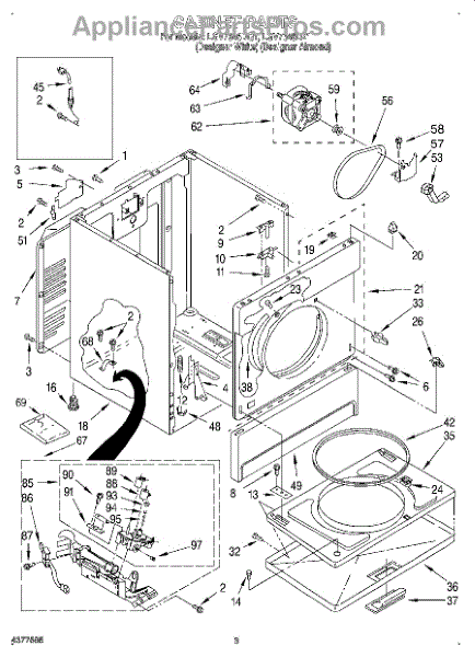 Fits all Whirlpool-made dryers (Whirlpool, Kenmore with prefix 110, Roper, KitchenAid, and Estate). Matching belt 341241 and rear support rollers 349241T. Whirlpool dryer repair manual 677818L.