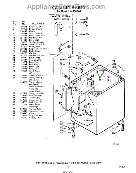 Parts for Whirlpool LHA4000W0: 05 - Cabinet Parts