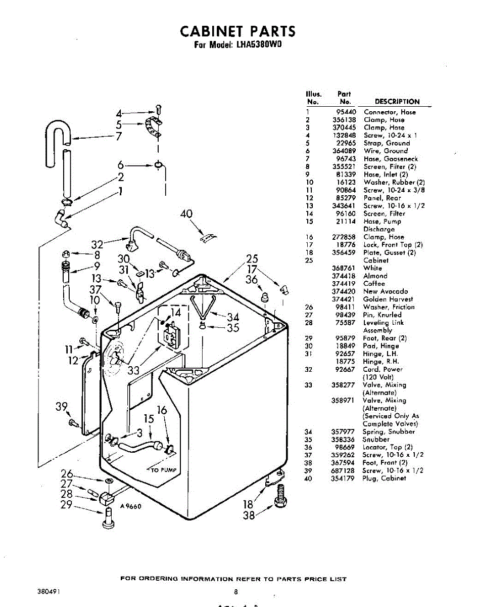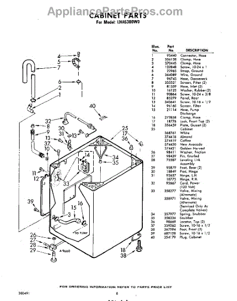 Parts for Whirlpool LHA5380W0: 08 - Cabinet Parts