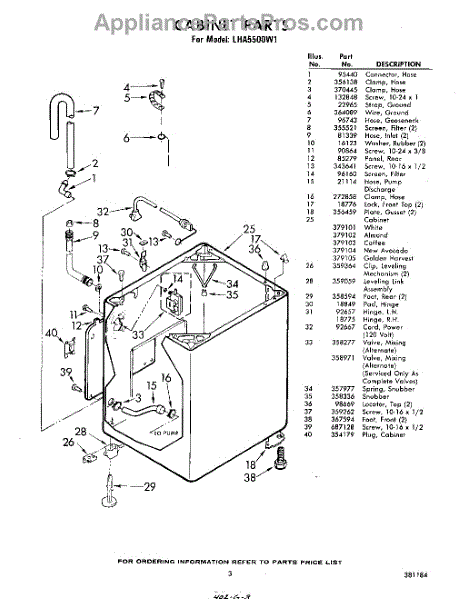 Parts for Whirlpool LHA5500W1: 03 - Cabinet Parts