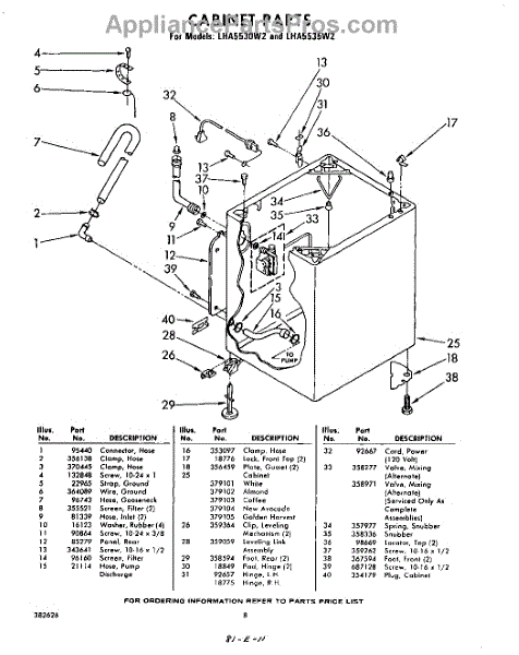 Parts for Whirlpool LHA5530W2: 08 - Cabinet Parts