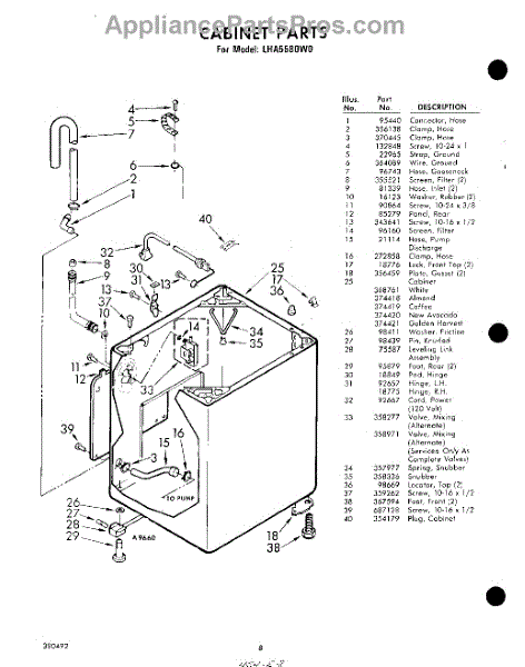 Parts for Whirlpool LHA5580W0: 08 - Cabinet Parts