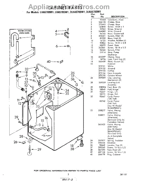 Parts for Whirlpool LHA5705W1: 03 - Cabinet Parts