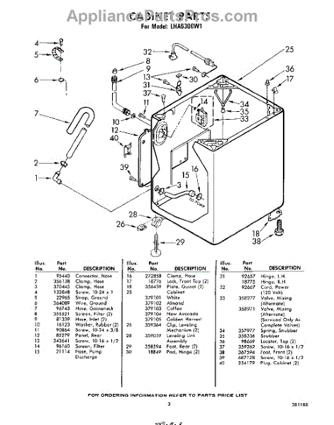 Parts for Whirlpool LHA6300W1: 03 - Cabinet Parts