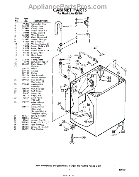 Parts for Whirlpool LHA6380W1: 03 - Cabinet Parts