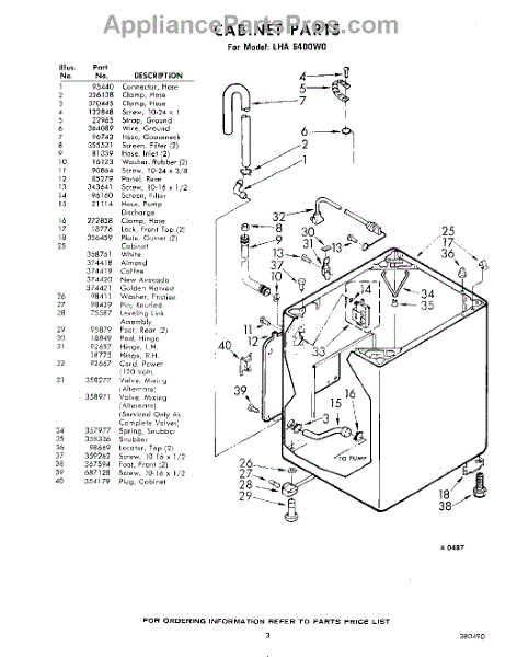 Parts for Whirlpool LHA6400W0: 03 - Cabinet Parts