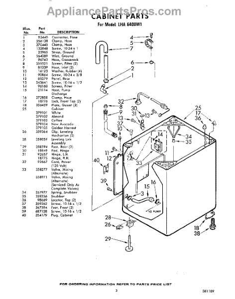 Parts for Whirlpool LHA6400W1: 03 - Cabinet Parts
