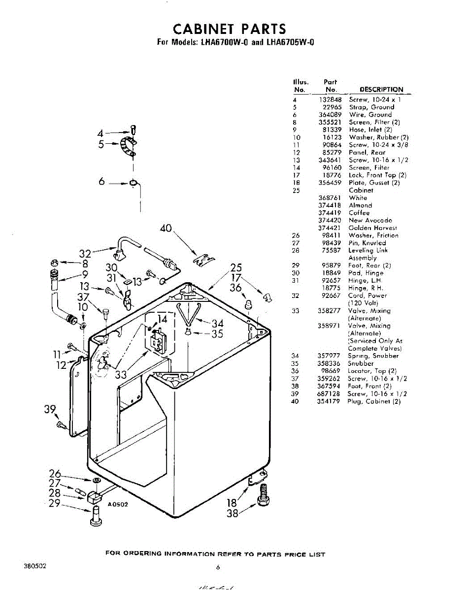 Parts for Whirlpool LHA6705W0: 06 - Cabinet Parts