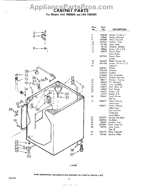 Parts for Whirlpool LHA7000W0: 06 - Cabinet Parts