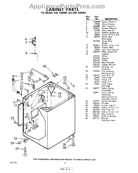 Parts for Whirlpool LHA7500W1: 06 - Cabinet Parts