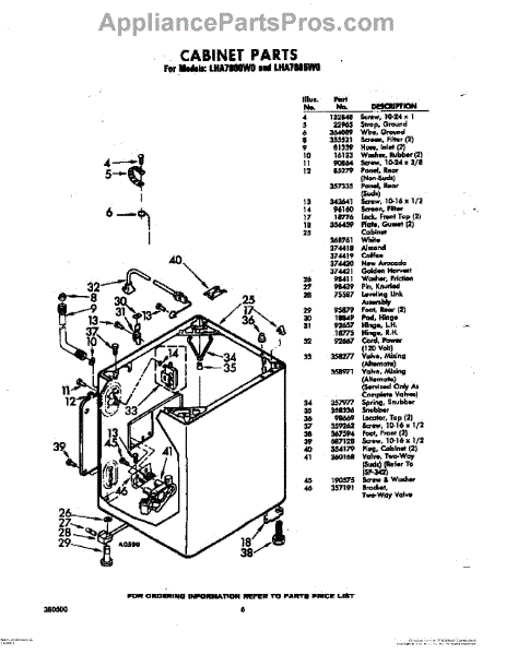 Parts for Whirlpool LHA7800W0: 06 - Cabinet Parts
