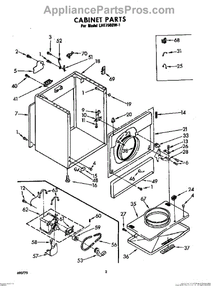 Parts for Whirlpool LHE7500W1: 02 - Cabinet Parts