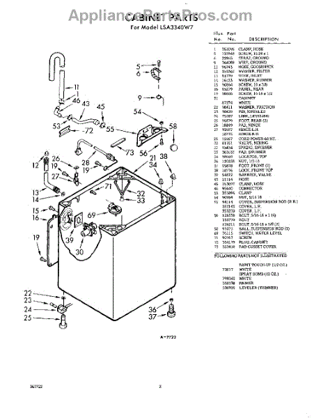 Parts for Whirlpool LSA3340W7: 02 - Cabinet Parts
