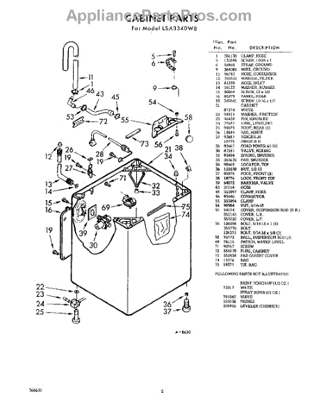 Parts for Whirlpool LSA3340W8: 02 - Cabinet Parts