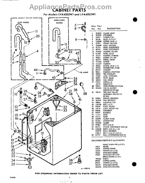 Parts for Whirlpool LVA4000W1: 02 - Cabinet Parts