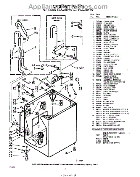 Parts for Whirlpool LVA4000W7: 02 - Cabinet Parts
