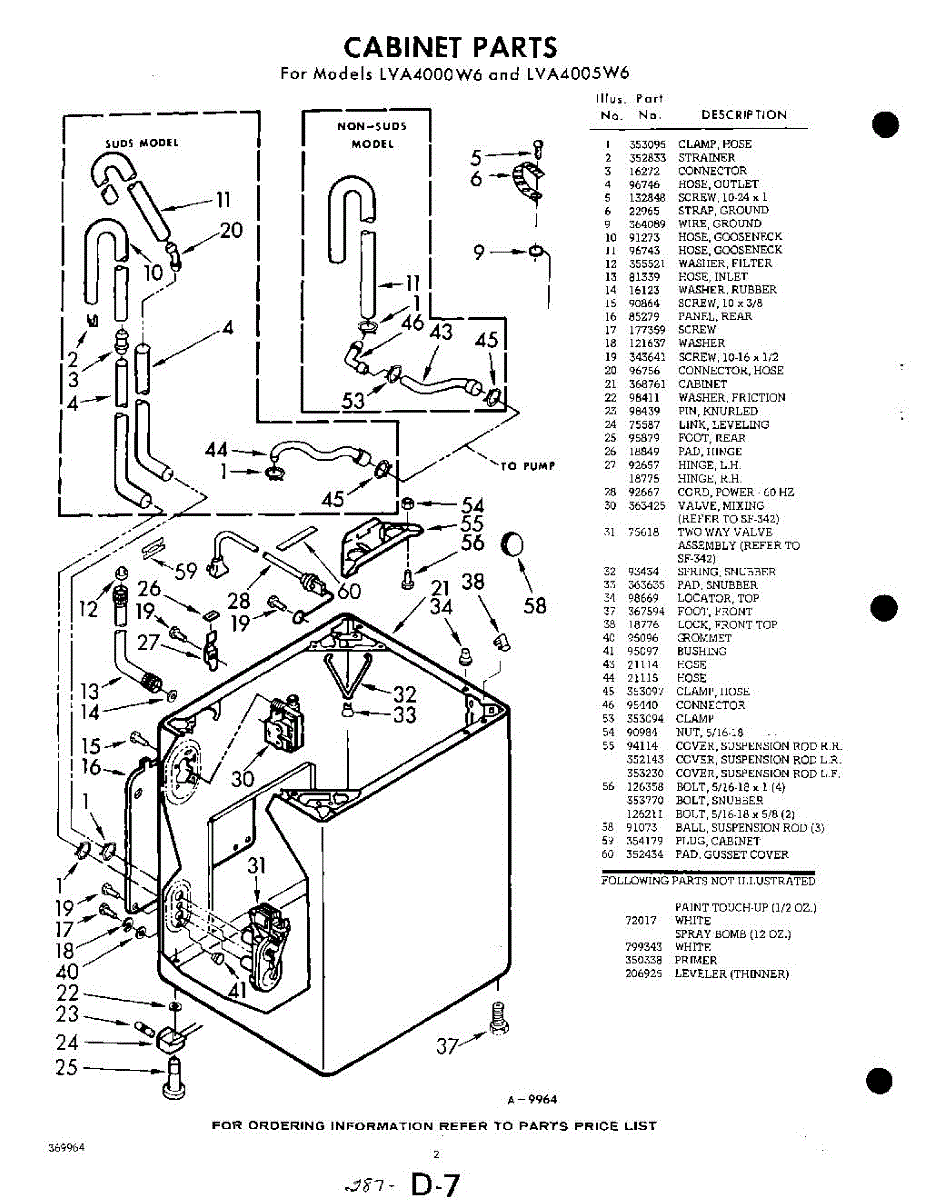 Parts for Whirlpool LVA4005W6: 02 - Cabinet Parts