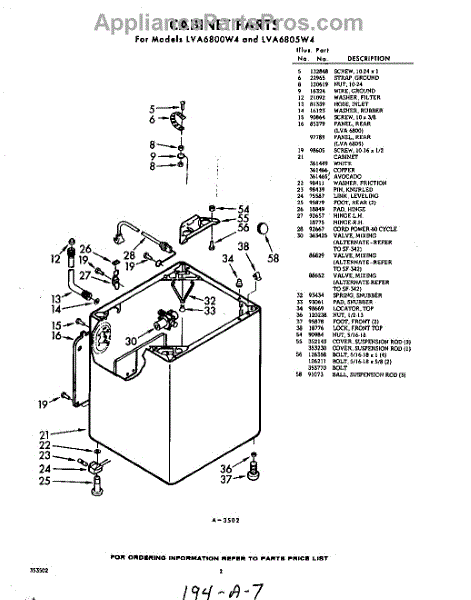 Parts for Whirlpool LVA6800W4: 02 - Cabinet Parts