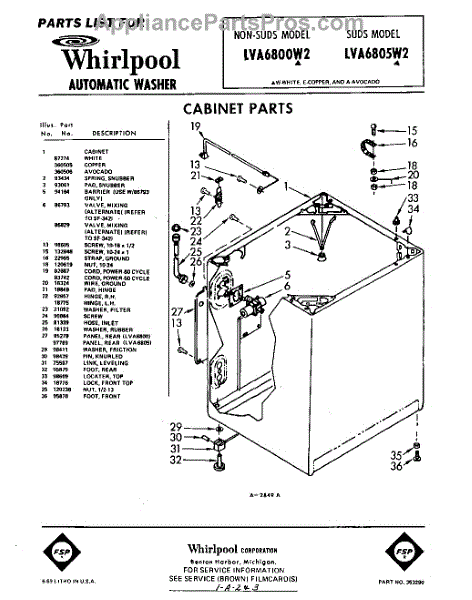 Parts for Whirlpool LVA6805W2: 01 - Cabinet Parts