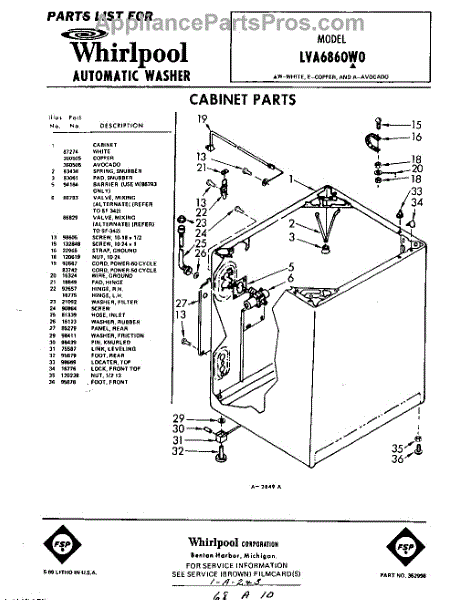 Parts for Whirlpool LVA6860W0: 01 - Cabinet Parts