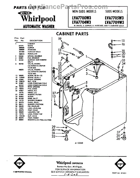 Parts for Whirlpool LVA7700W3: 01 - Cabinet Parts