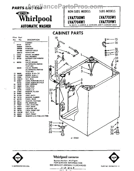 Parts for Whirlpool LVA7704W1: 01 - Cabinet Parts