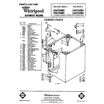 Parts for Whirlpool LVA7709W3: 01 - Cabinet Parts