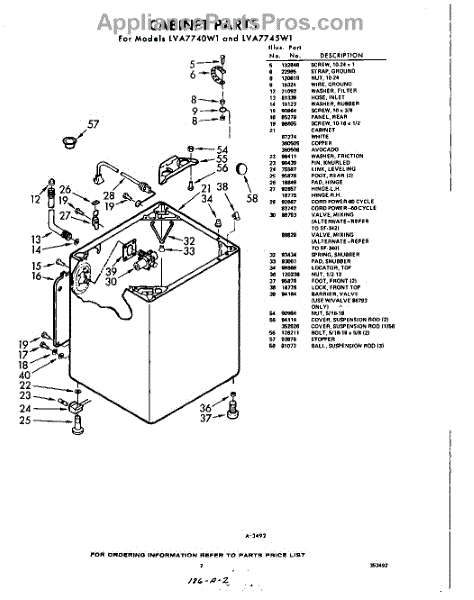Parts for Whirlpool LVA7745W1: 02 - Cabinet Parts