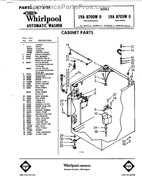 Parts for Whirlpool LVA8700W0: 01 - Cabinet Parts
